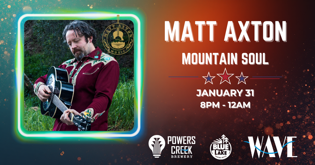 Some say rock music is dead, but fans of Matt Axton know that Mountain Soul Rock & Roll is alive and kicking! His band delivers a powerful mix of classic singer/songwriter storytelling and guitar-driven roots-rock resulting in a unique, modern form of Americana. Whether it’s getting crowds to kick up some dancing dust at large festivals or performing to intimate crowds, the end result is always the same: good music with good people having a great time. Boasting 300+ original songs and some of LA’s best players behind him, Axton continues to carve his path in the independent Americana scene and proudly celebrates his family tradition of bringing a bit more “Joy to the World!”