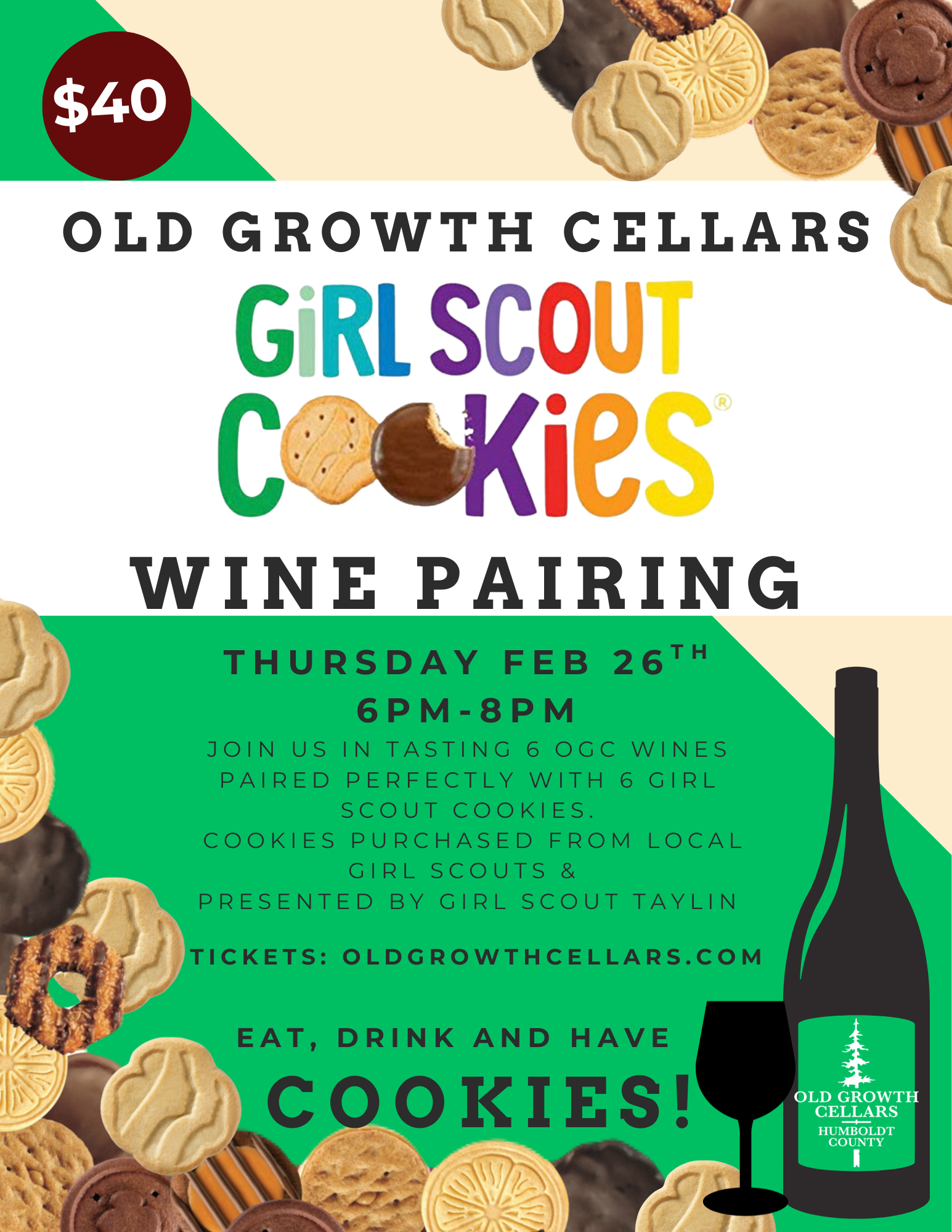 Join us as we pair 6 OGC wines perfectly with 6 Girl Scout Cookies. Tickets are $40 purchased online.