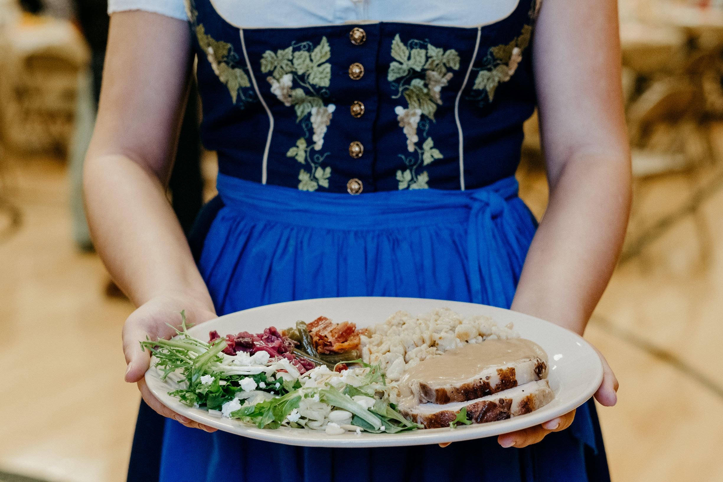 Oktoberfest at The Lutheran Church of Arcata features an authentic seasonal German menu showcasing Sauerbraten beef roasts marinated for a full week in a traditional wine-vinegar-spice brine; rich gingersnap gravy; homemade Spätzle (German pasta sautéed in European butter); sweet-and-sour red cabbage (Suss-saures Rotkraut); crisp and tangy German-style green salad with a sharp Bavarian vinaigrette; and garden-fresh bacon-pear green beans (Birnen, Bohnen, und Speck).