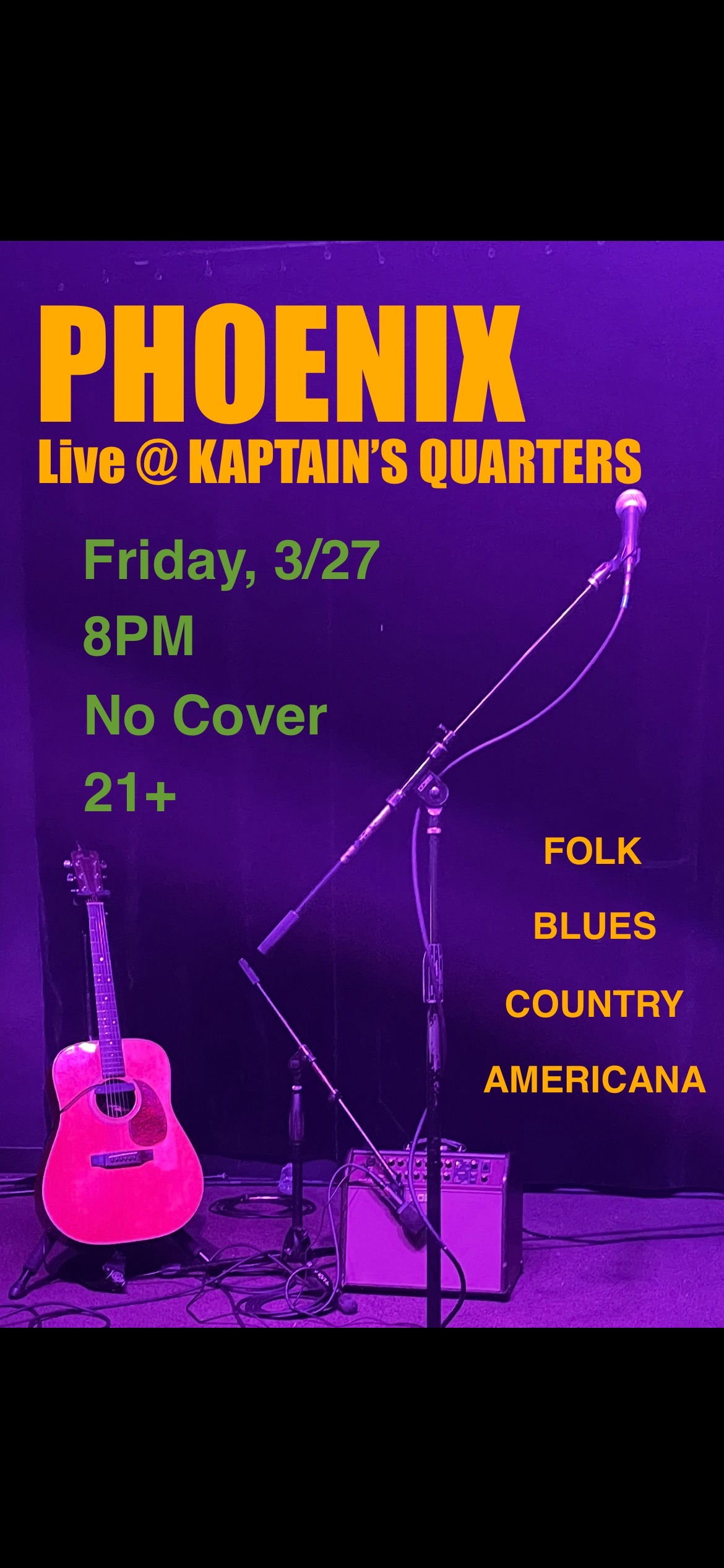 Local solo acoustic talent featuring Americana, Blues, Folk and Country!