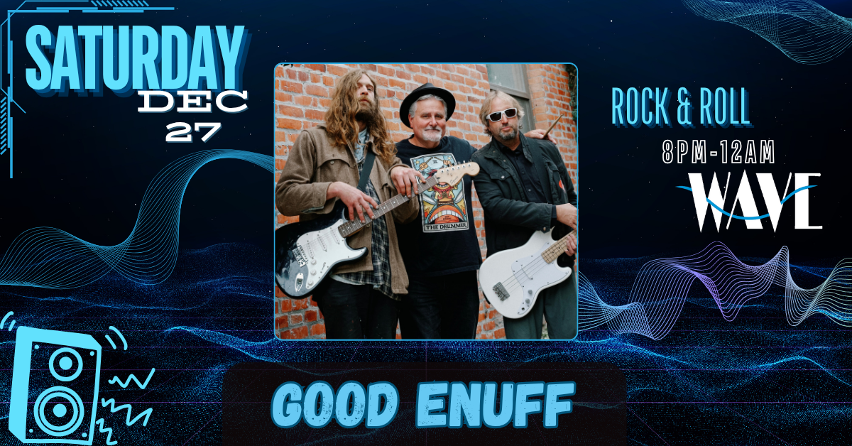 Making their Wave Lounge debut, local Rock & Roll cover band Good Enuff will be playing all of your favorites from the best eras of music. Come down to the Wave, have a drink, and dance off some of those Christmas dinner calories to the talents of Good Enuff!