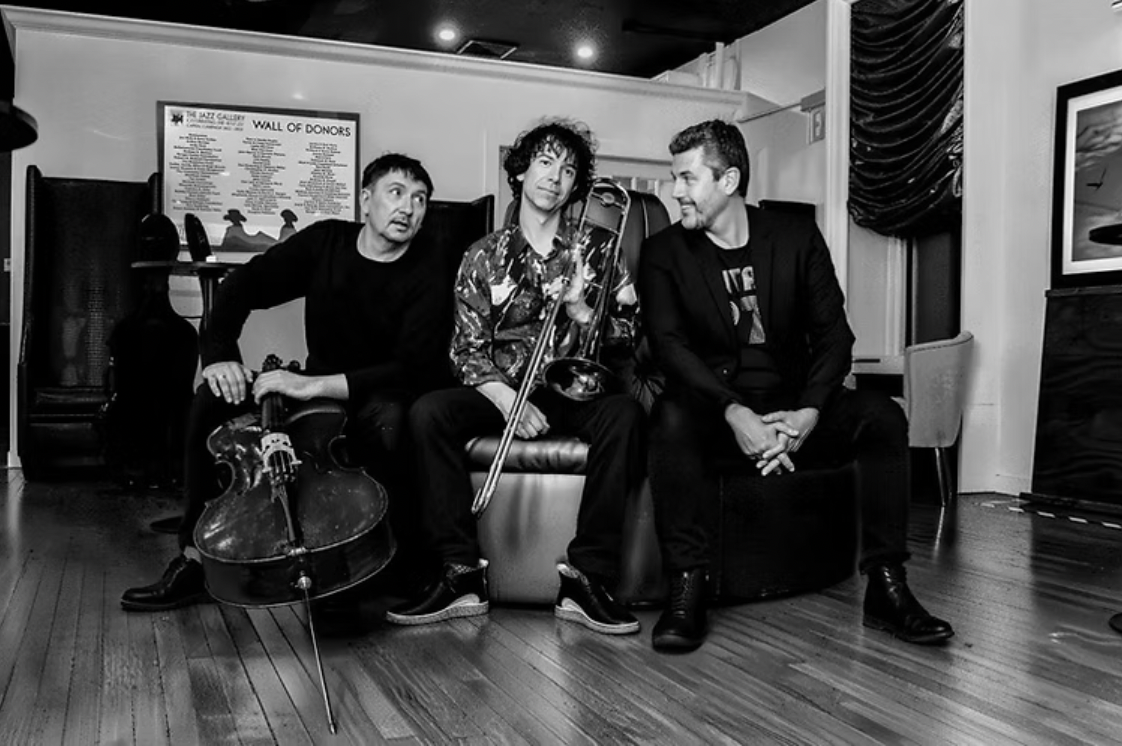 The trans-oceanic chamber jazz trio Reverso—Frank West, piano; Ryan Keberle, trombone; and Vince Curt, cello—last graced the Playhouse stage just days before the world shut down in 2020. But during and after the pandemic, they’ve continued their Franco-American explorations of the jazz and classical crossroads first mapped by late nineteenth- and early twentieth-century figures like Ravel, “Les Six,” and, most recently—the focus of a brand-new album (their sixth), Between Two Silences—Eric Satie.