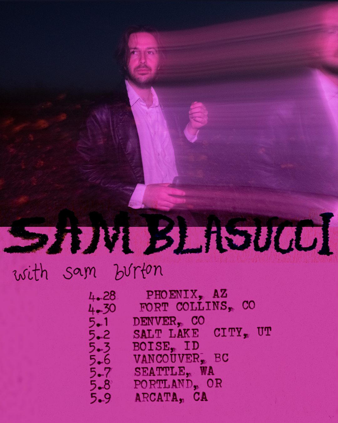Born in Northeast Los Angeles, Sam Blasucci has lived across the U.S. and Mexico, including Coahuila, New Orleans, and Orem, and now finds home in Ojai, California. He learned music from his father as a child and formed Mapache at age 20, releasing 5 albums before launching his solo career in 2023.