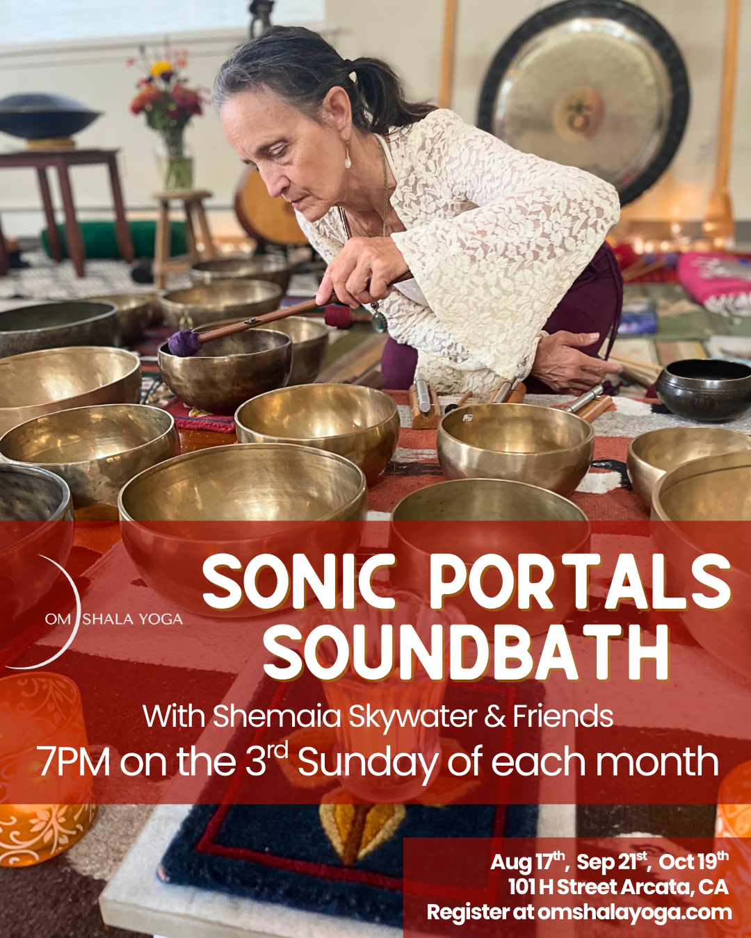 Step into a meditative sound journey led by Shemaia Skywater, where vibration and resonance become gateways to deep restoration. Through crystal bowls, chimes, drums, voice, and other healing instruments, Shemaia weaves an immersive soundscape designed to quiet the mind, soothe the nervous system, and open portals of inner awareness. Come lie down, release, and allow the frequencies to guide you into states of balance, spaciousness, and renewal. Adults only. Advanced registration is required, sign up online at omshalayoga.com