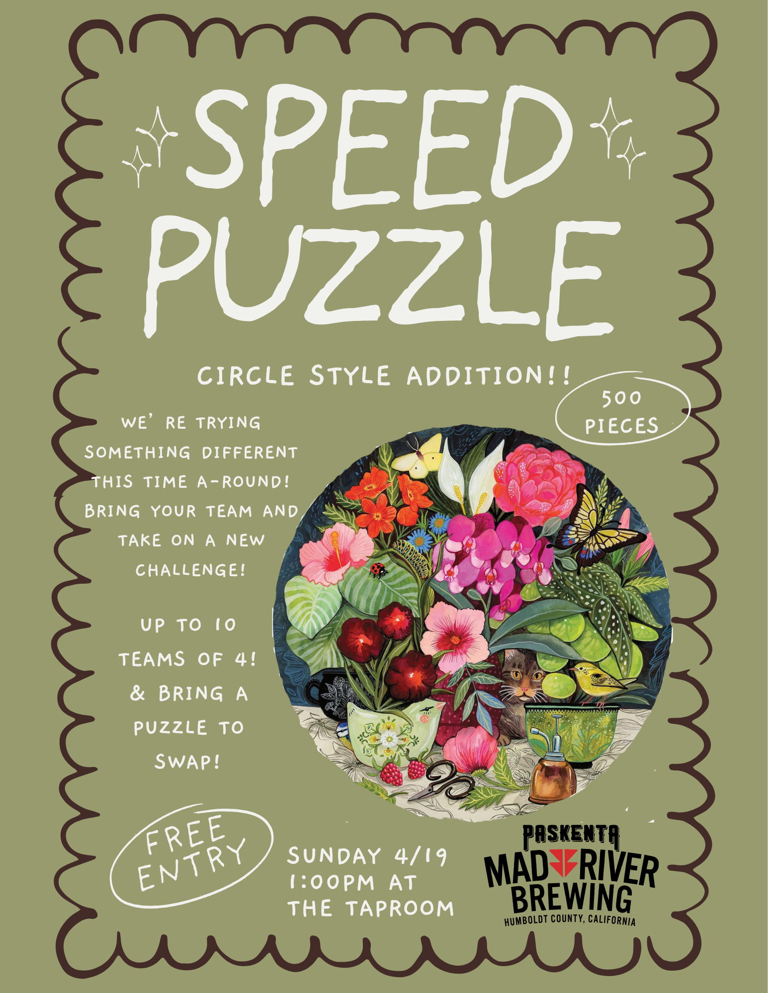 In addition, we will be hosting a puzzle swap. Bring one puzzle per person to participate. Email info@madriverbrewing.com for more information and to secure your spot for this popular event!