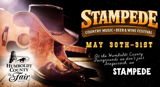 The Humboldt County Fairgrounds will come alive with a THUNDER of country music May 30-31st 2026, with the launch of the first annual STAMPEDE - a two-day country music concert, camping, beer, and wine festival! The event will showcase award-winning beer and wine, all-day entertainment, food trucks, and up-and-coming country artists all for an all-encompassing weekend experience.