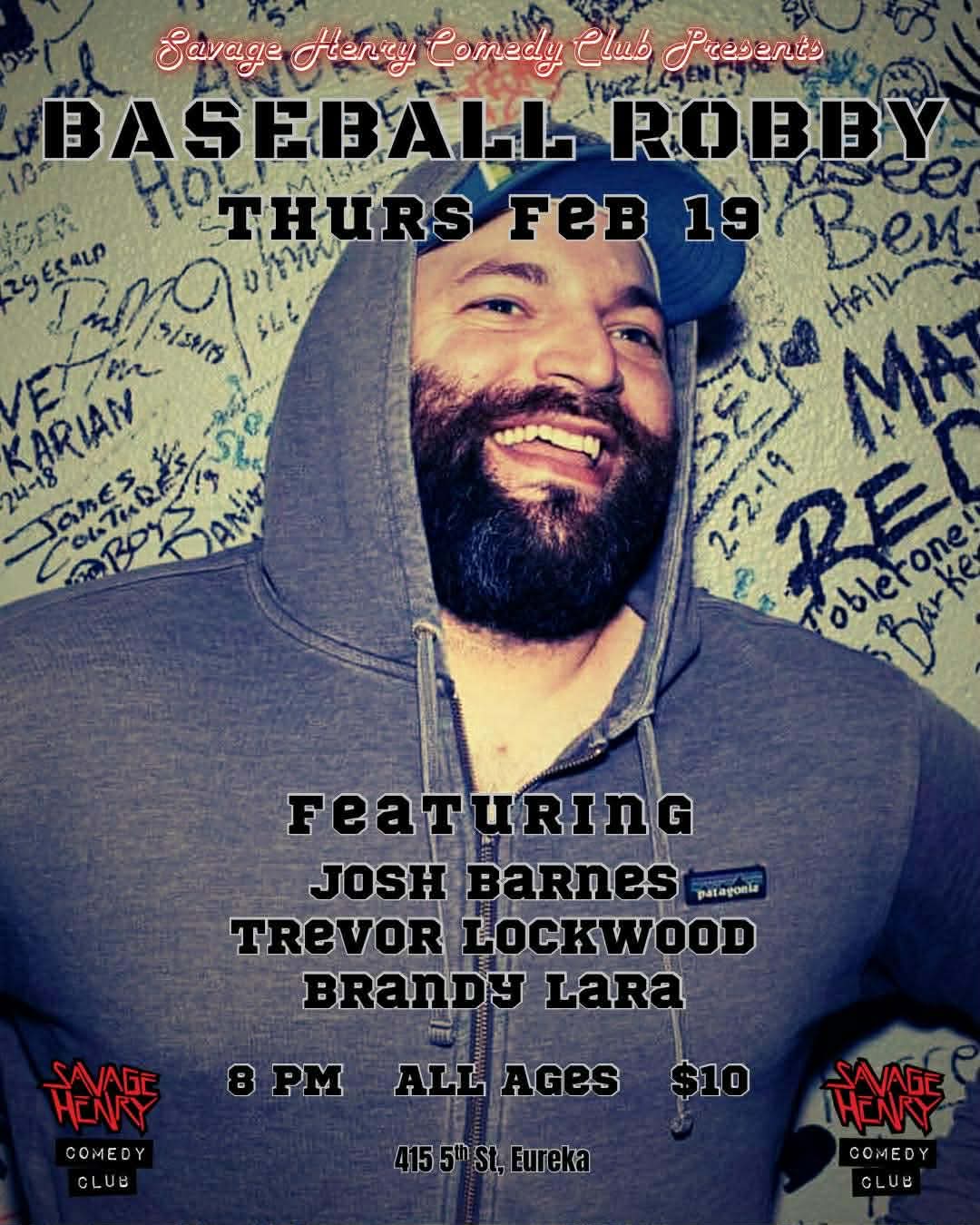 Local favorite Baseball Robby headlines the club! His unique anti-comedy stylings will have you falling out of your chair!