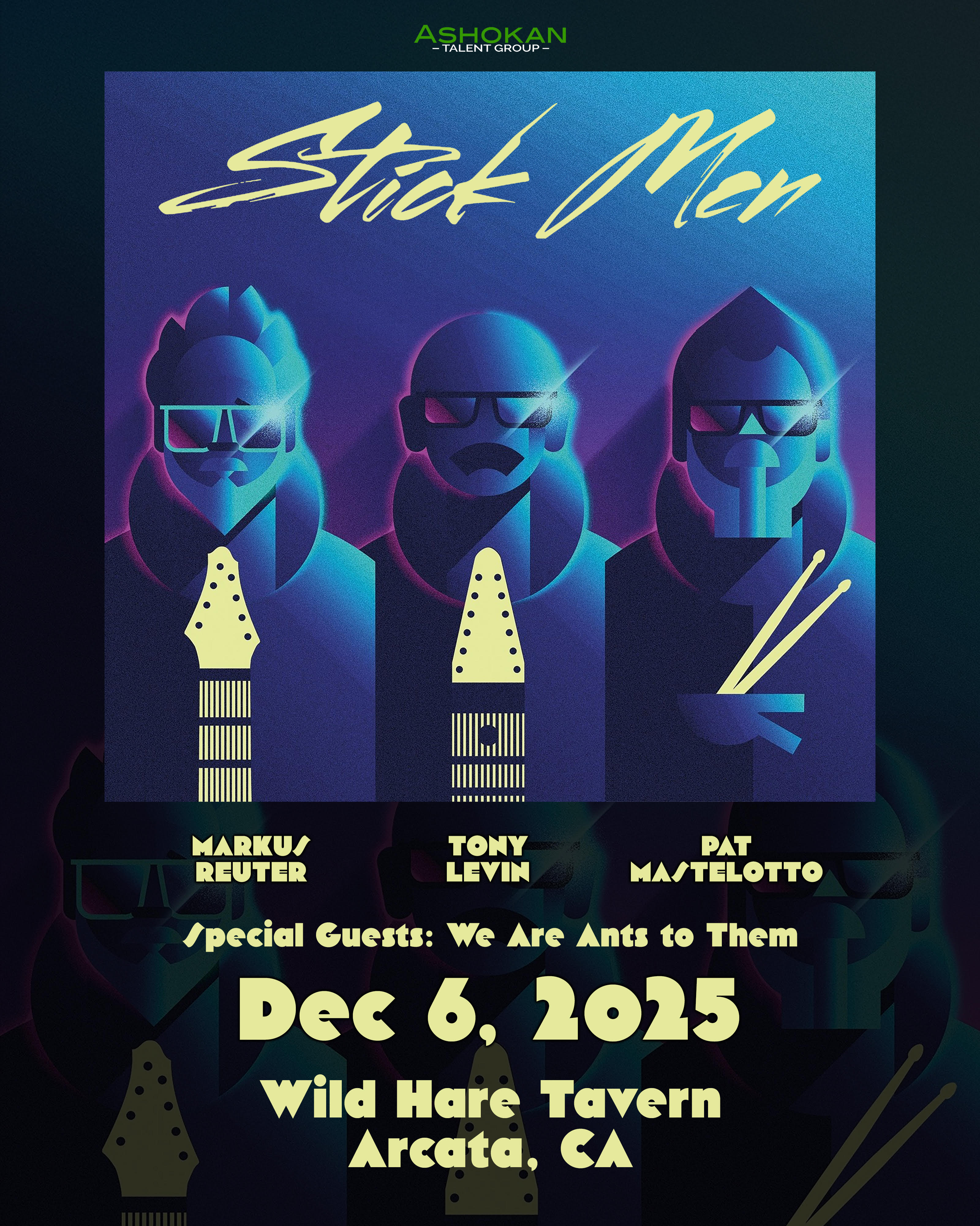 Stick Men is a powerhouse progressive rock trio featuring legendary musicians Tony Levin, Pat Mastelotto, and Marcus Reuter. With a combined experience of over 100 million records sold worldwide, this supergroup brings unparalleled musicianship and innovation to every performance. Tony Levin is known for his work with Peter Gabriel and King Crimson. Pat Mastelootto a drummer extraordinaire also known for his tenure with King Crimson and chart-topping success with Mr. Mister. Markus Reuter rounds out the trio with his self-designed touch-style guitar. Stick Men’s Music defies easy categorization, blending elements of Art Rock, Progressive Rock and at times Progressive Meta.