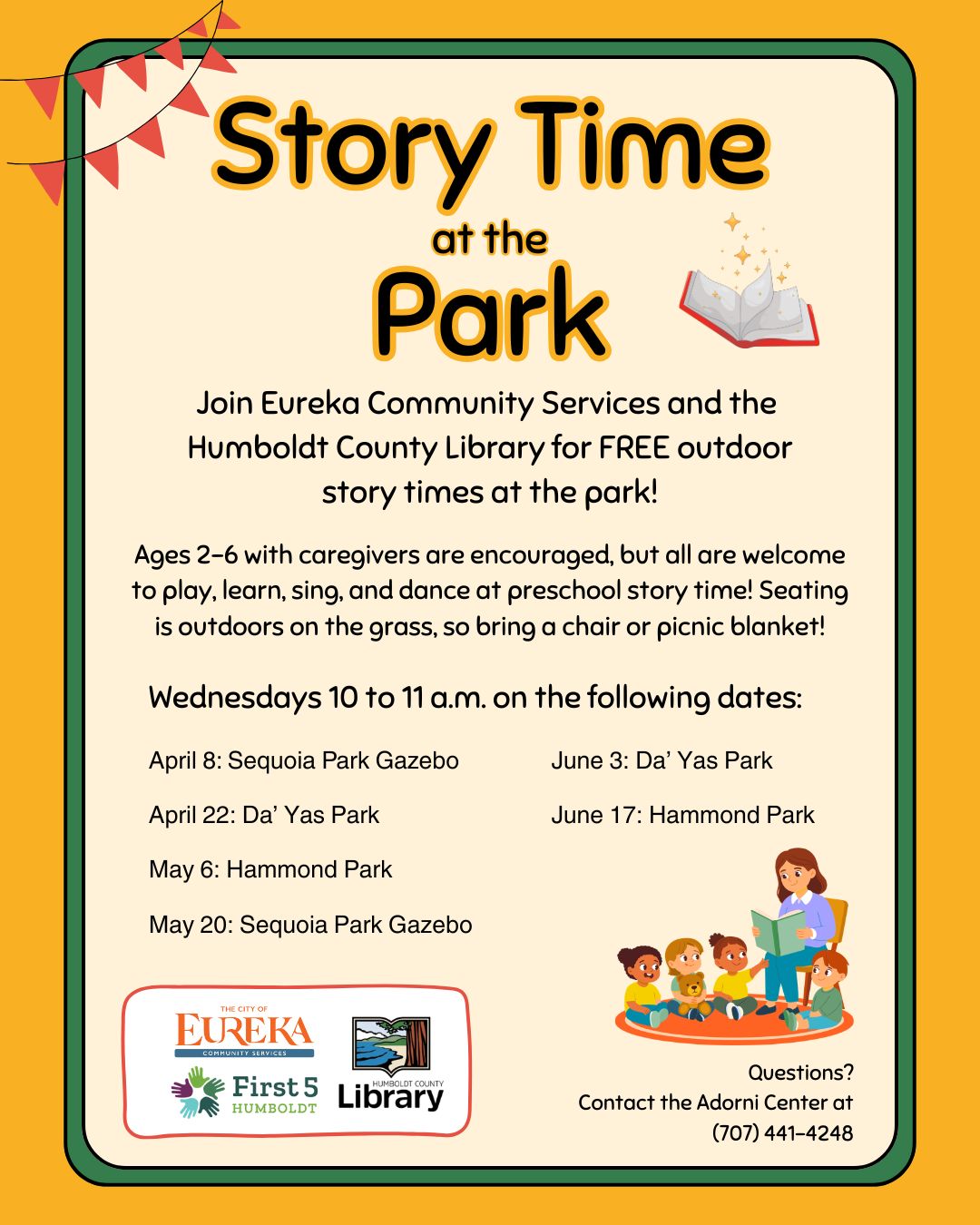 Join Eureka Community Services and the Humboldt County Library for FREE outdoor story times at the park!