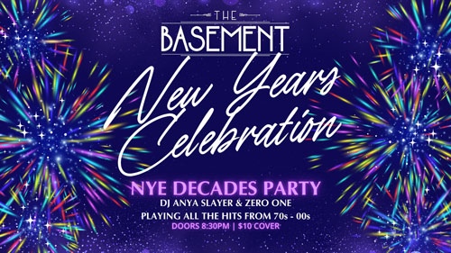 Ring in the New Year at The Basement! Our New Years Eve Decades Party has become a staple over the last two years and this year promises even more fun. Join DJs Anya Slayer and Zero One as they take us through all the hits spanning from 1970 through the 2000s. The giant clock will be counting us down to Midnight and we hope you will join us for the big moment as we welcome 2026!