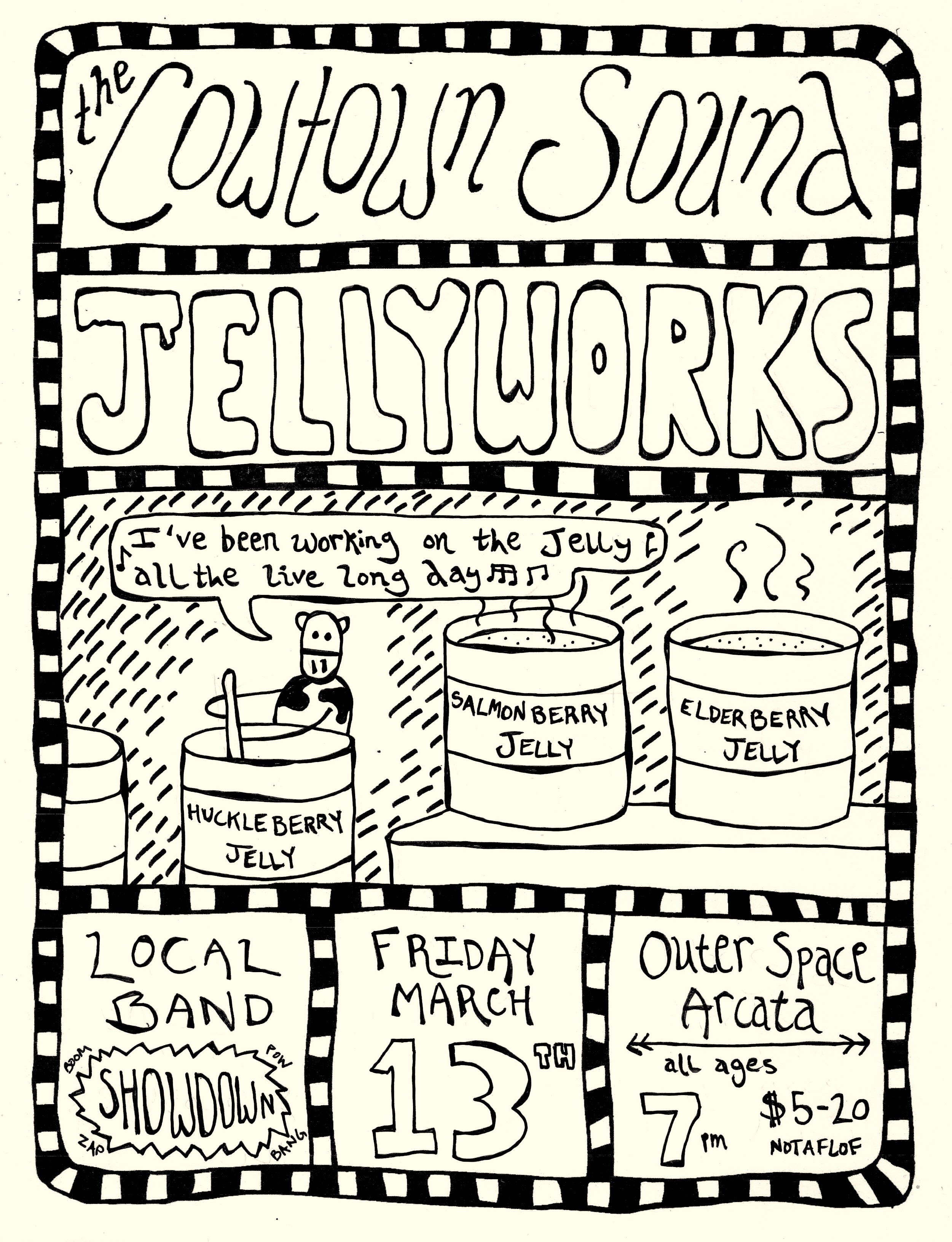 Come dig the sounds of two local bands of weirdos, performing their sonic stuff for yer delight! The Cowtown Sound has the dial set to hippie-punk honky-tonk, like the Meat Puppets playing a backwoods barn dance…. Jellyworks serves up synth-driven squiggle rock, like your favorite 80s radio station with the vocals turned off… Get down!