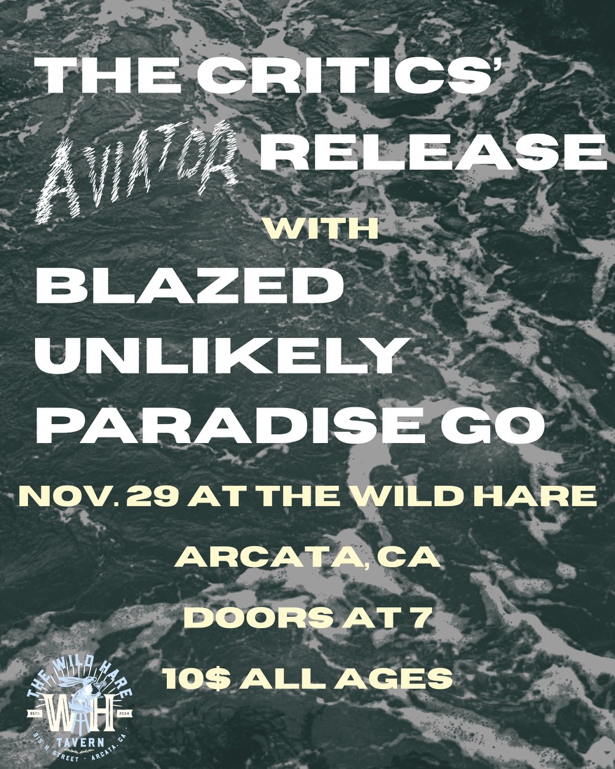The Critics are releasing their second album! Join us for their ALL-Star Show. 7:00 Doors, 7:30 Paradise Go, 8:00 Unlikely, 9:00 Blazed, 9:30 THE CRITICS featuring Sergio Ramirez, Josh Fuller, Ethan Fuller & Aaron Soli.