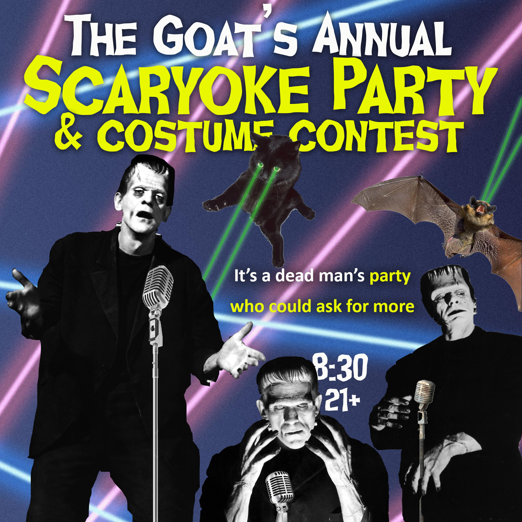 The spoopiest of karaokes returns The Night Before Halloween, so get your costumes ready! Bar opens at 6 pm for Happy Hour, song sign-ups start at 8:30. Creeps and weirdos, lions and tigers and bears - bring your best Halloween costume and get bonus points for singing in character! 21 & up only, no cover, 2 drink minimum purchase at the bar.
