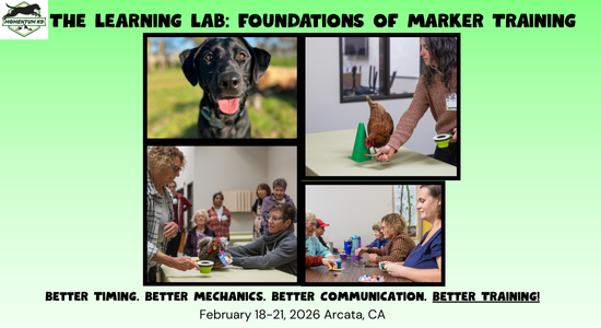 Hey dog enthusiasts! The Learning Lab: Foundations of Marker Training is a 4 day hands-on workshop designed to help trainers, handlers and dog owners refine their timing, observation, clarity and understanding of dog behavior like never before. By the end of the 4 day workshop, you’ll have a new appreciation for the power of clear communication — and a deeper understanding of how to use markers to build precise, reliable behavior with your dog. February 18-21, 2026. 9:00 a.m. to 5:00 p.m. each day. Lunch will be provided, along with light snacks, refreshments and coffee.