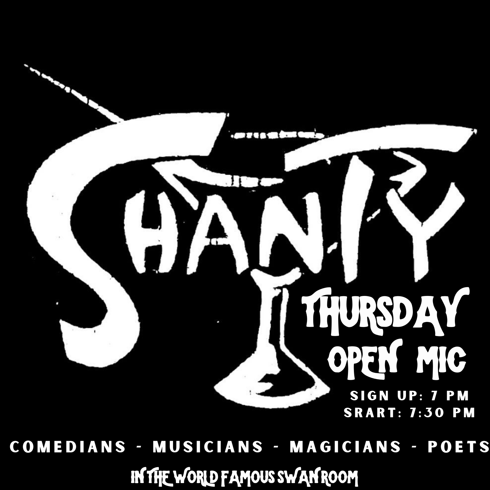 Chris Durant hosts this weekly mix mic (comedy, music, magic, poetry) in the World Famous Swan Room at The Shanty in Old Town Eureka.