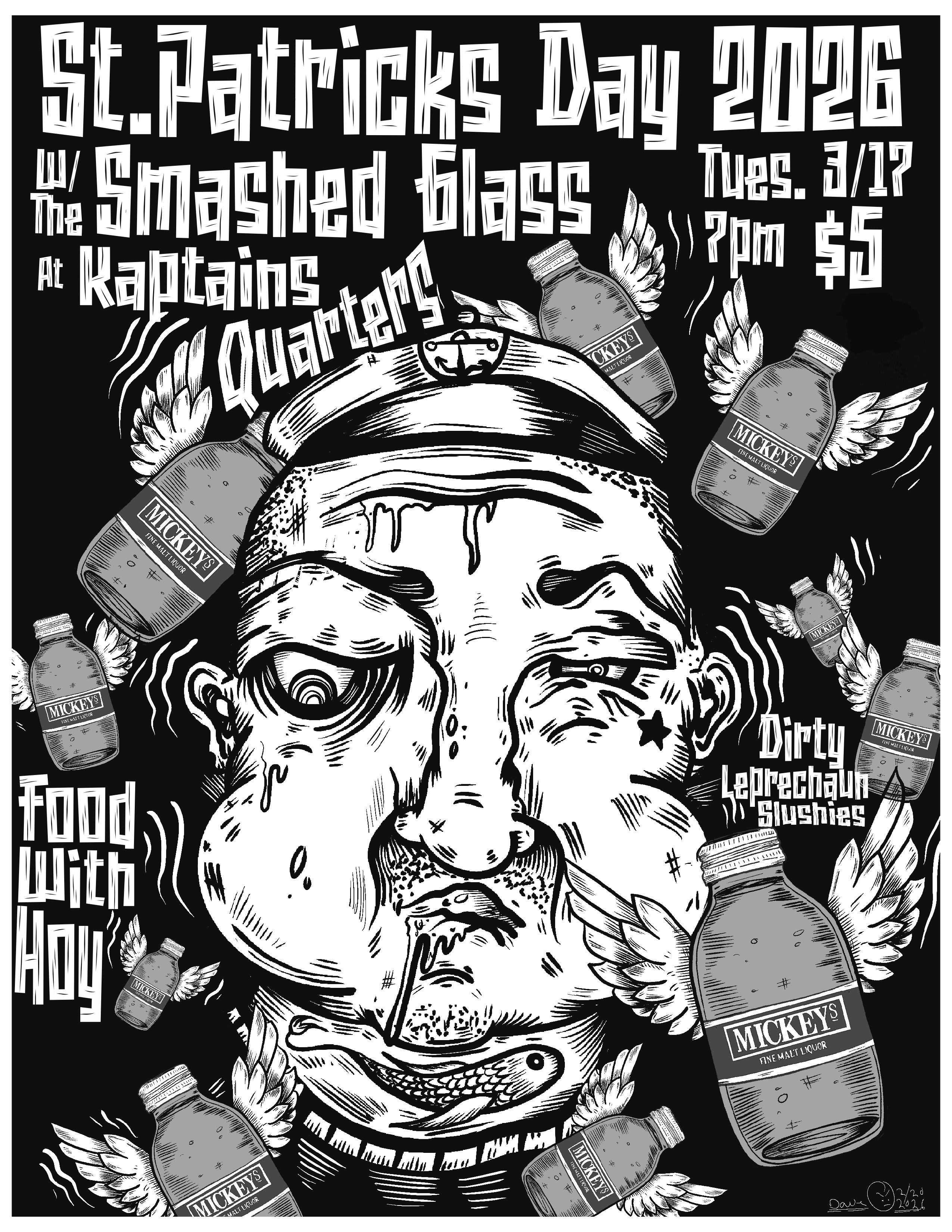 We are so proud have local legends, The Smashed Glass, help us celebrate St. Patrick’s Day at Kaptain’s Quarters! Also joining us is the mouth watering food pop-up, Food w/ Hoy! And, of course, we’ll have our famous Dirty Leprechaun slushy to suck down! Come celebrate a sloshy good time with us!