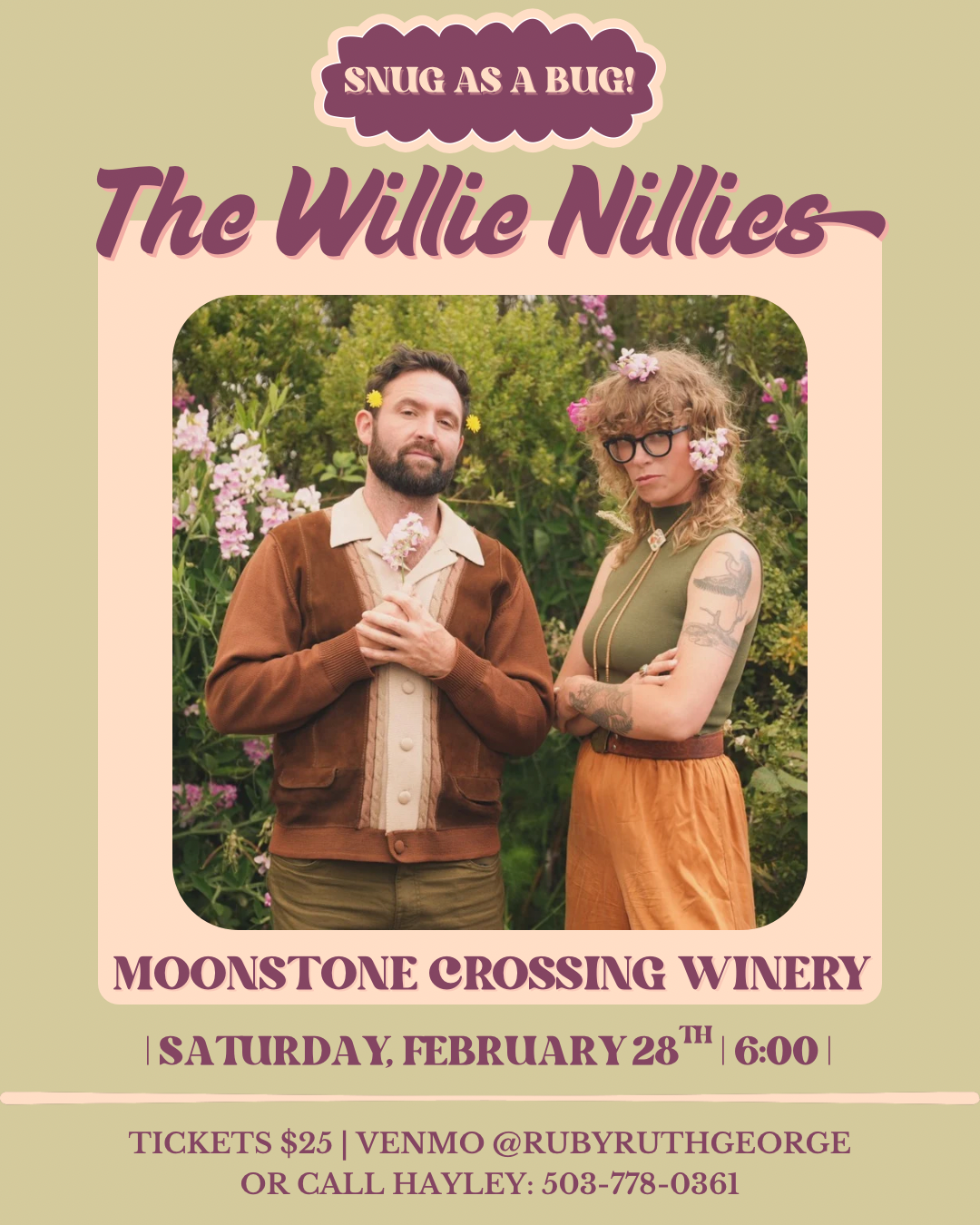 We are delighted to announce the 2nd Snug as a Bug Evening with @the_willie_nillies next Saturday February 28th at 6pm! It may not be a Leap Year, but itβs the closest we can get πΈπΆπ₯
