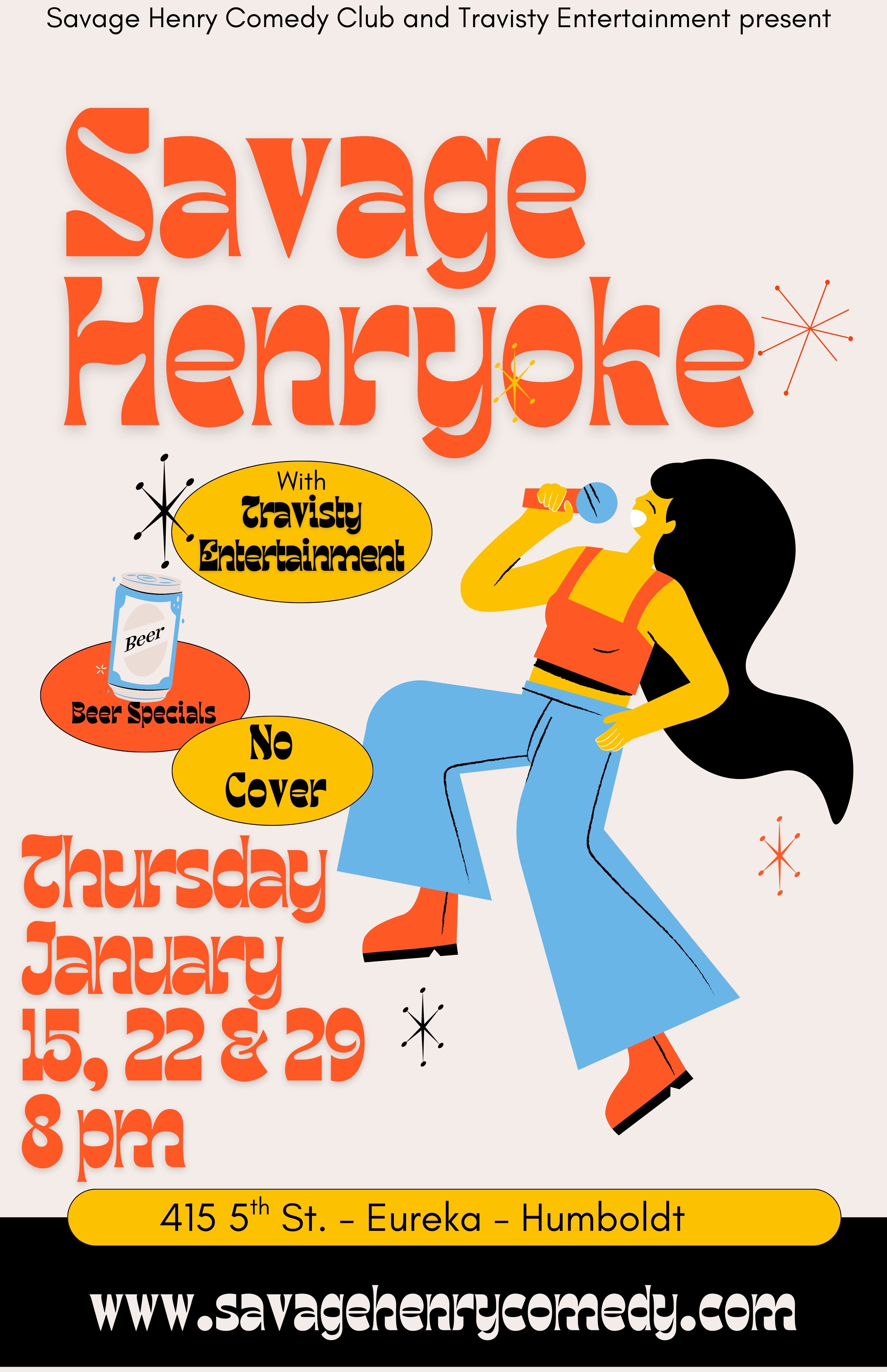 Travisty Entertainment hosts karaoke at Savage Henry Conedy Club the last 3 Thursdays of January!! Come sing your favorite songs and drink your favorite drinks
