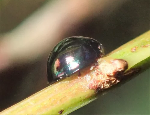 The Chilocorinae are a subfamily of ladybirds in the family Coccinellidae. They feed on different type of scale insects. They are shiny color and usually have no spots or patterns on their wing covers. Their bodies are in round helmet shapes. They are medium in size and are sometimes seen feeding on cowpea aphids.