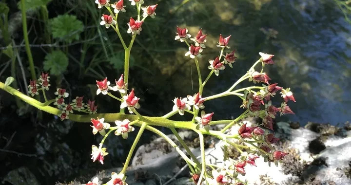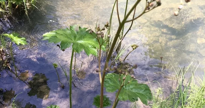 Darmera peltata (Indian rhubarb or umbrella plant) is a flowering plant, the only species within the genus Darmera in the family Saxifragaceae. It is a slowly spreading rhizomatous perennial native to mountain streamsides in woodland in the western United States (southwestern Oregon to northwestern California), growing to 2 m (6 ft 7 in) tall by 1 m (3 ft 3 in) wide. The name Darmera comes after Karl Darmer, a Berlin horticulturist from 19th century.