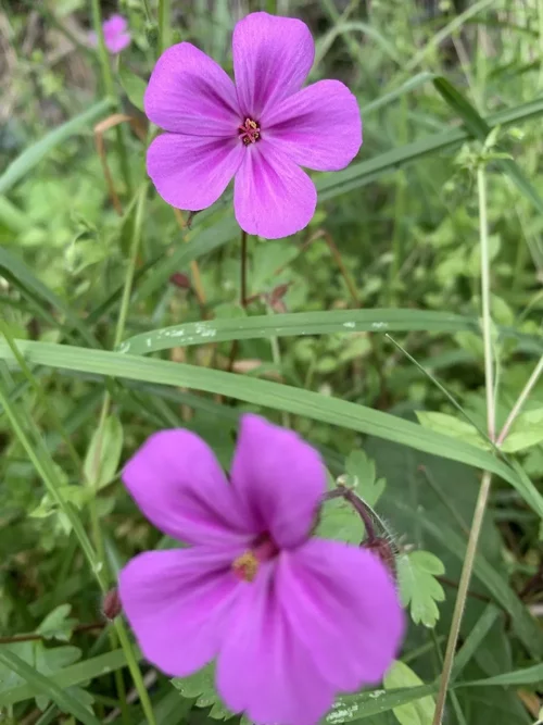Geranium is a genus of 422 species of flowering annual, biennial, and perennial plants that are commonly known as the cranesbills. They are found throughout the temperate regions of the world and the mountains of the tropics, but mostly in the eastern part of the Mediterranean region. The long, palmately cleft leaves are broadly circular in form. The flowers have five petals and are coloured white, pink, purple or blue, often with distinctive veining. Geraniums will…