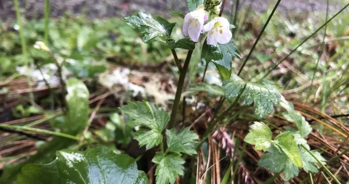 Cardamine californica (Milkmaids) (also Dentaria californica) is a flowering plant in the family Brassicaceae, native to western North America from Washington to California and Baja California. It is common in a variety of habitats including shady slopes, open woodlands, chaparral and grasslands in the winter and early spring. In the San Francisco Bay Area, it is one of the first wildflowers to bloom, with blossoms from January to May.