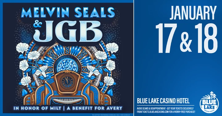 Legendary B3 organist Melvin Seals, “Keeper of the Flame,” brings his Jerry Garcia Band to Blue Lake Casino’s Sapphire Palace for two benefit nights on January 17-18, supporting the family of the late Sean “Milt” Dolan. Local Dead tribute band Rosewater opens both shows.