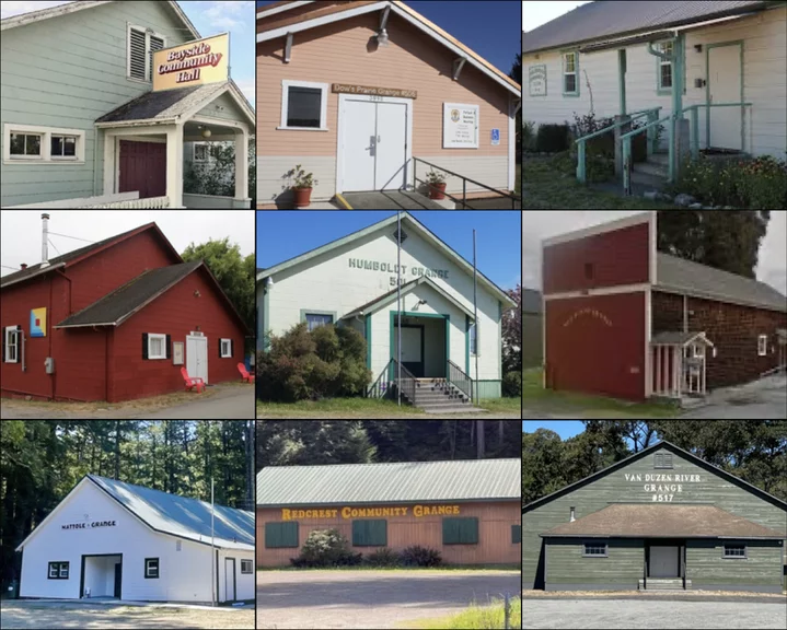 THE NINE: (L to R, Up and Down) Bayside, Dows Prairie, Fieldbrook, Freshwater, Humboldt, Mad River, Mattole, Redcrest, Van Duzen granges.